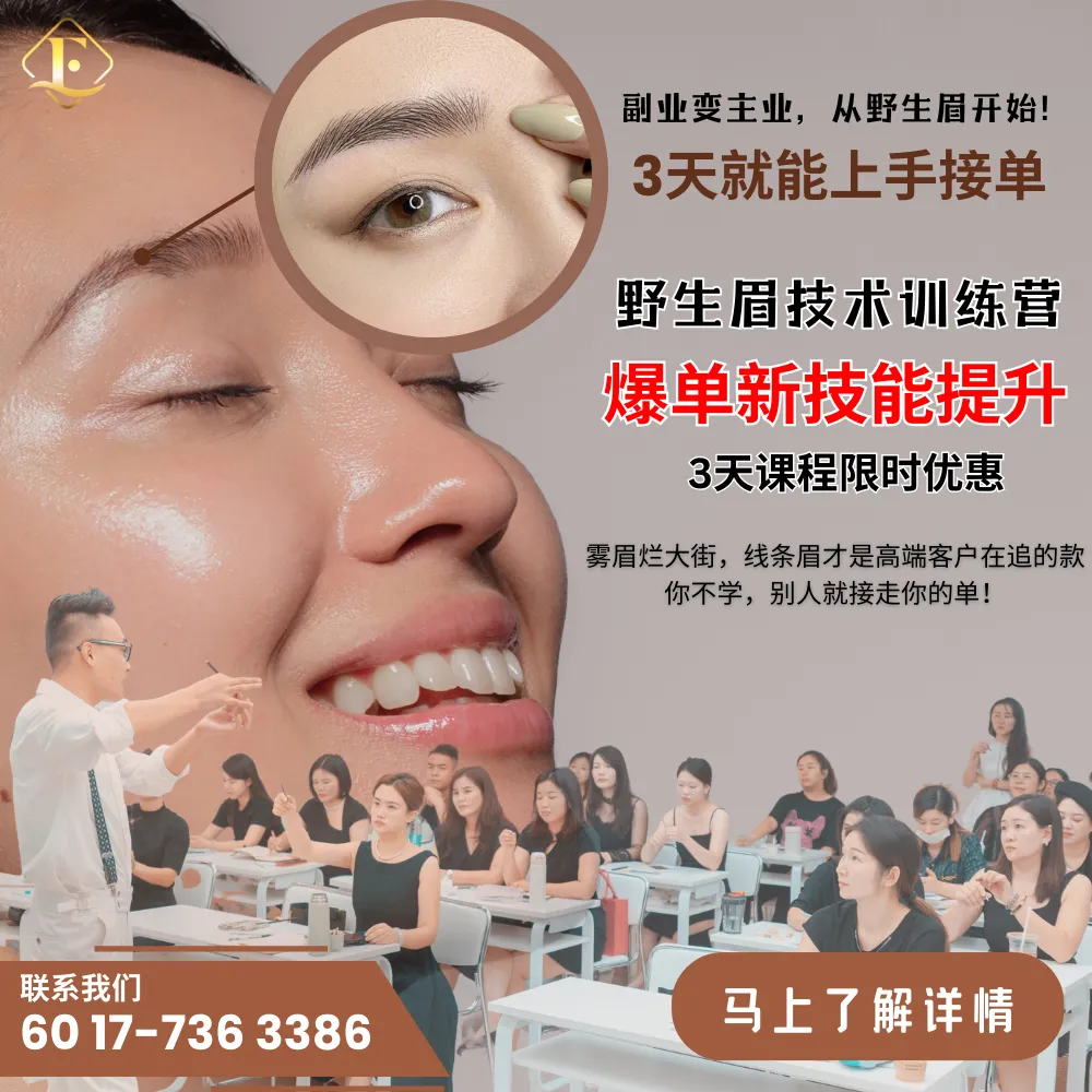 A:本课程采用小班制,每班限额招生,额满即止。而且市场趋势正在向“野生线条眉”转型,越早掌握越能抢占市场先机。